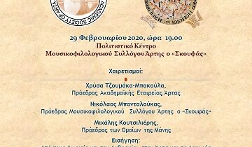 Αδελφοποίηση Ακαδημαϊκής Εταιρείας Άρτας και του Ινστιτούτου “Όμοιοι της Μάνης”
